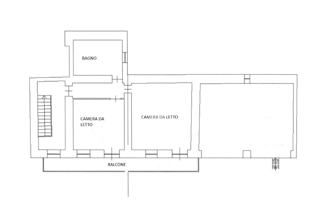 Al primo piano la zona notte è composta da due camere da letto, un secondo bagno e un balcone che si estende lungo tutta la facciata principale.
