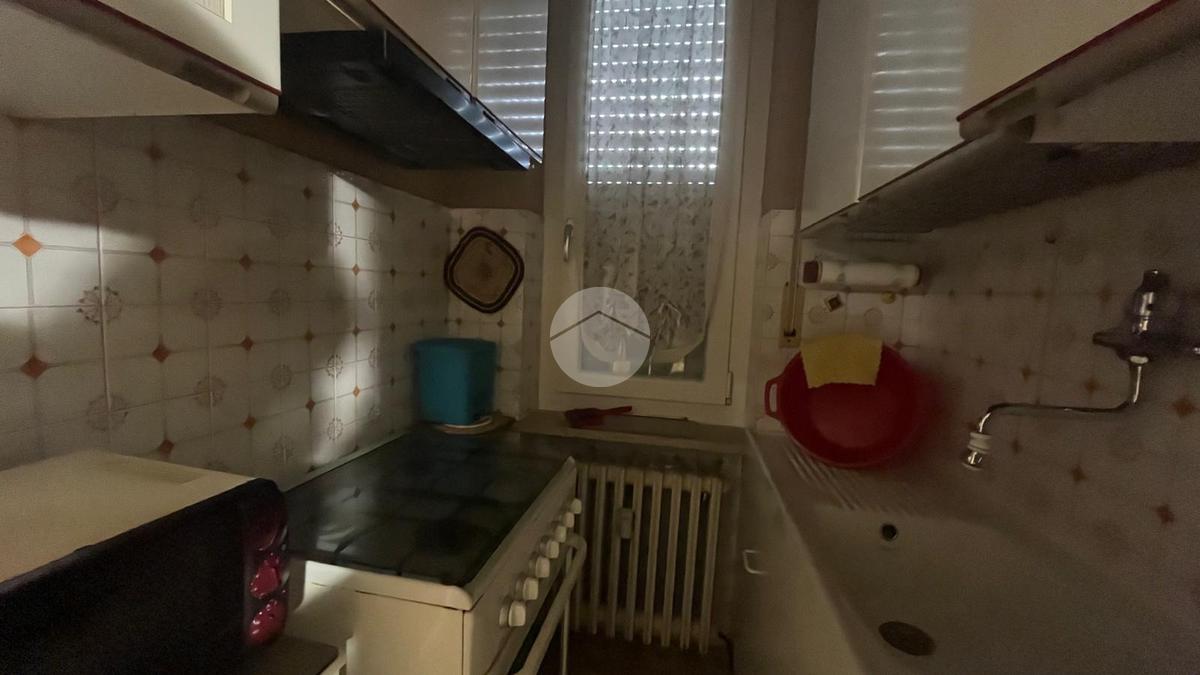 L’appartamento è composto da una camera da letto con balcone, un piccolo disimpegno, un bagno finestrato e un soggiorno con angolo cottura dotato di accesso a un terrazzo.
