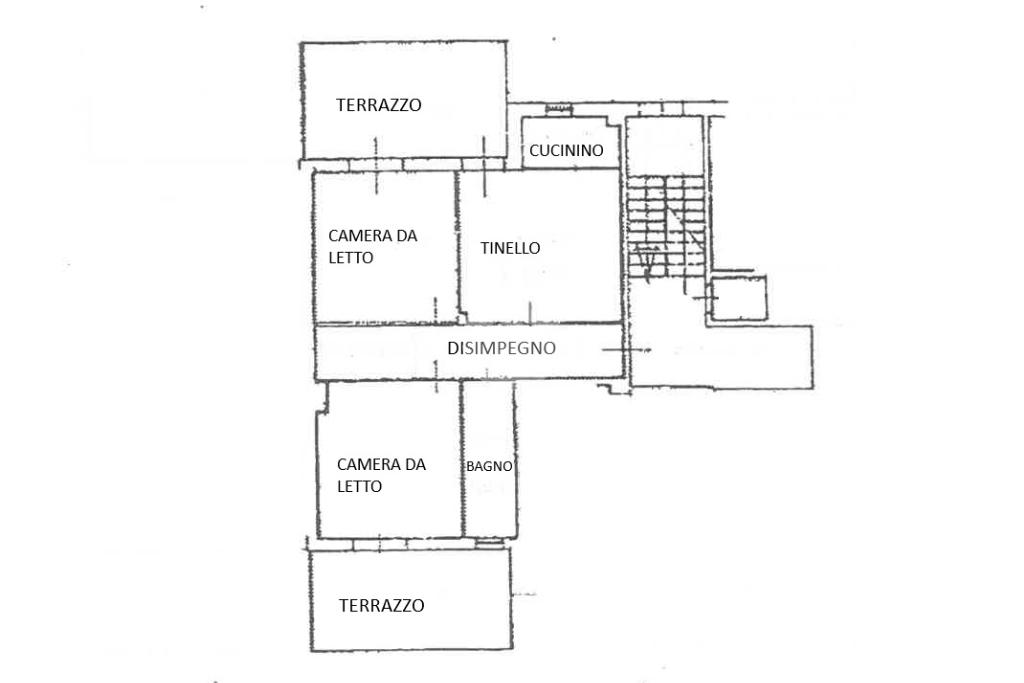 L'ingresso avviene su un disimpegno che conduce al soggiorno con angolo cottura e uscita esterna sul terrazzino.