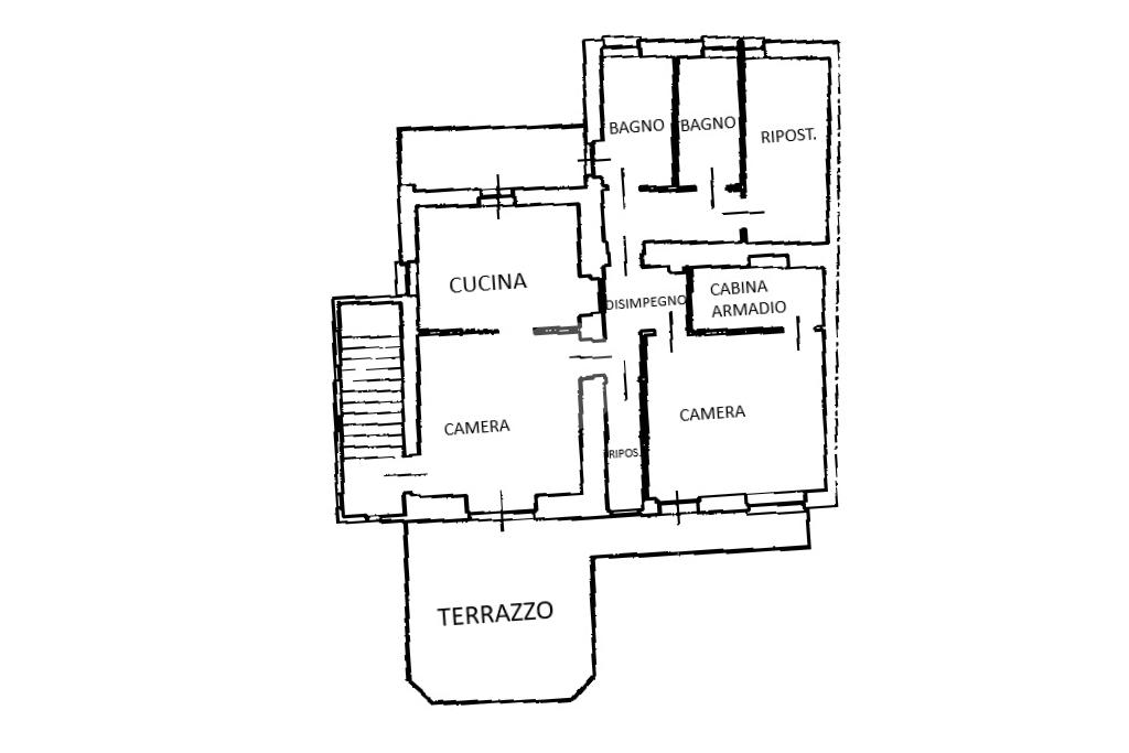 Al piano primo l'immobile è anch'esso composto da soggiorno con uscita esterna su terrazzo, cucina abitabile, due camere da letto e due bagni.